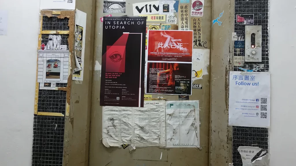 由於香港計算樓層的方式和台灣不同,我們的「一樓」是他們的「地下」(ground floor, G/F),有的樓面又介於上下層梯間,有時候真搞不懂實際上人到底在哪層樓,貼在一堆塗鴉中的貼紙寫著「按7字」,那就7樓吧。灣仔的富德樓也好,旺角的序言也好,每一次去,都在搭電梯的時候,覺得一場冒險就要展開。