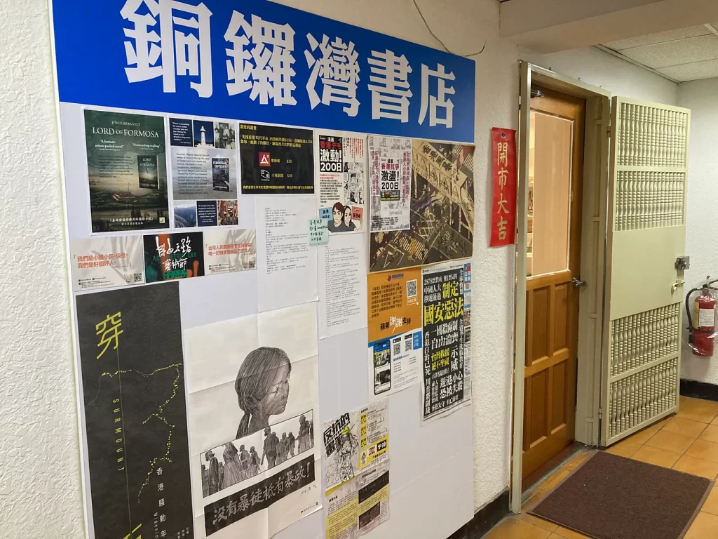 在開幕一陣子之後,我挑了一個週六到中山區逛書店。我這人性格彆扭,在小空間裡容易不自在。週末店裡客人多,可以分散注意力。銅鑼灣書店所在大廈的入口比起香港是明亮寬敞多了,但還是莫名有種好像回到香港的感覺。一出電梯就能看到門口的店招和告示欄,當然沒貼得像香港那樣誇張。不過在此要老實招認,其實我在香港很少登門造訪,因為自己就是同在銅鑼灣賣書的人,下了班真的只想回家。